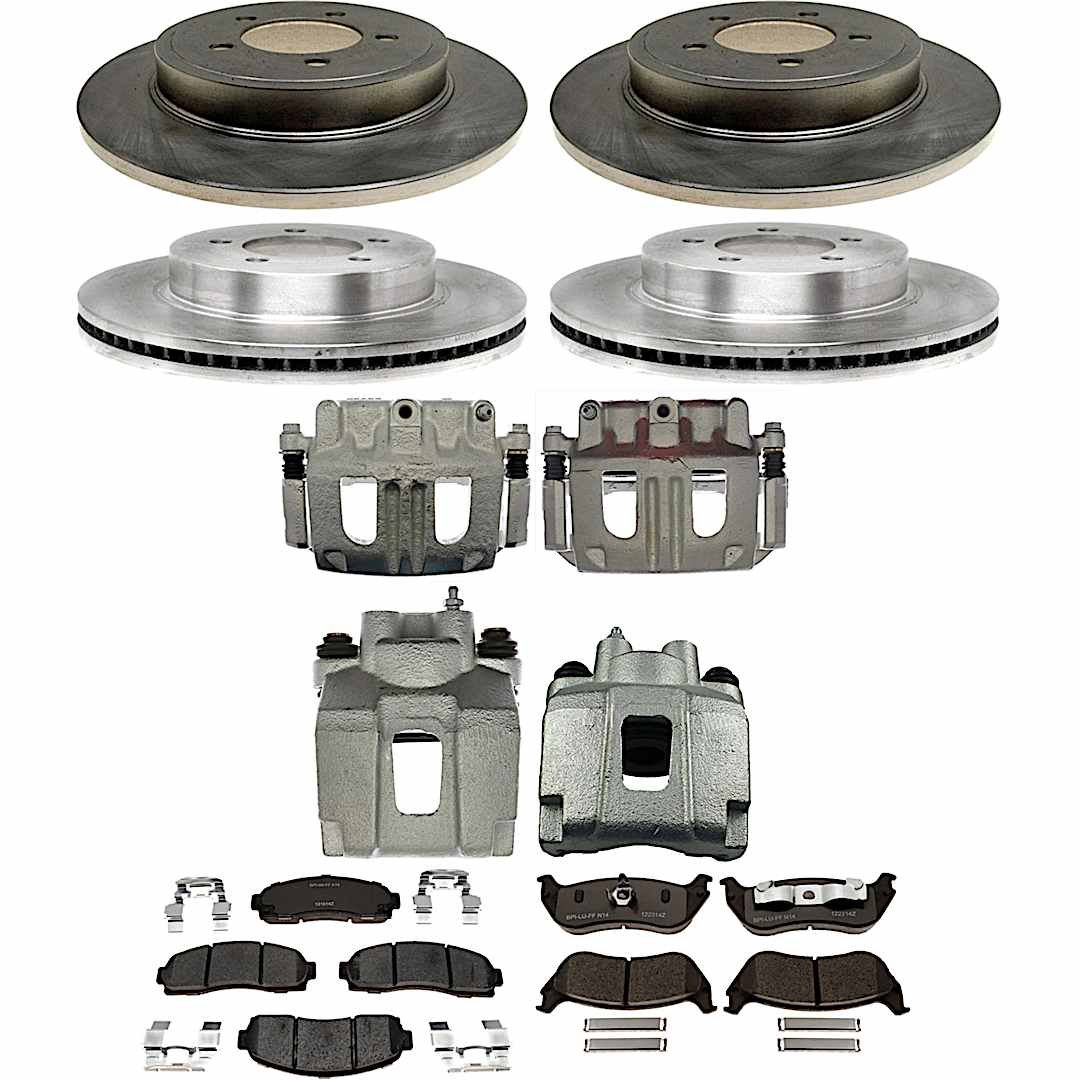 This kit contains Raybestos R-Line Series brake rotors, Raybestos R-Line Series brake pad set, and Raybestos ELEMENT3 Series brake calipers.