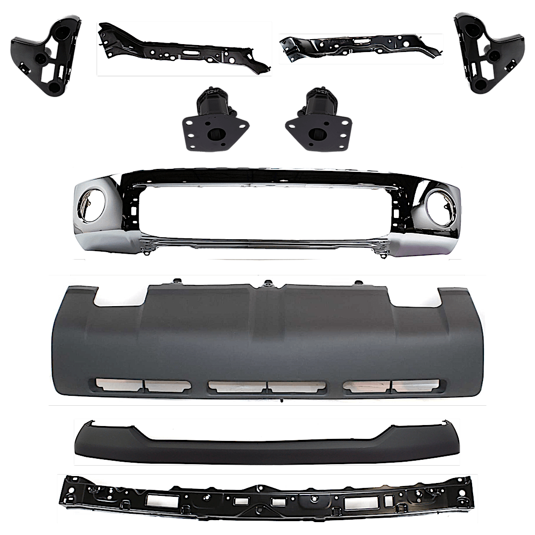 Replacement 10-Piece Kit, Front Bumper, Chrome, Includes (1) Bumper, (4) Bumper Bracket, (1) Bumper Cover, (3) Bumper Retainer, and (1) Valance