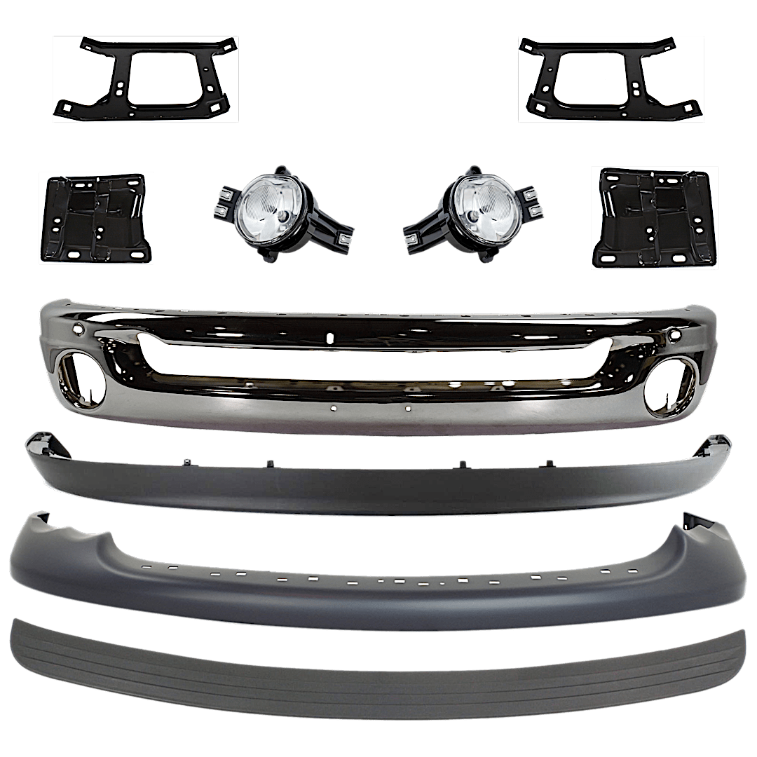 Replacement 10-Piece Kit Front Bumper, Chrome, Includes (1) Bumper, (4) Bumper Bracket, (1) Bumper Trim, (2) Fog Light, and (2) Valance