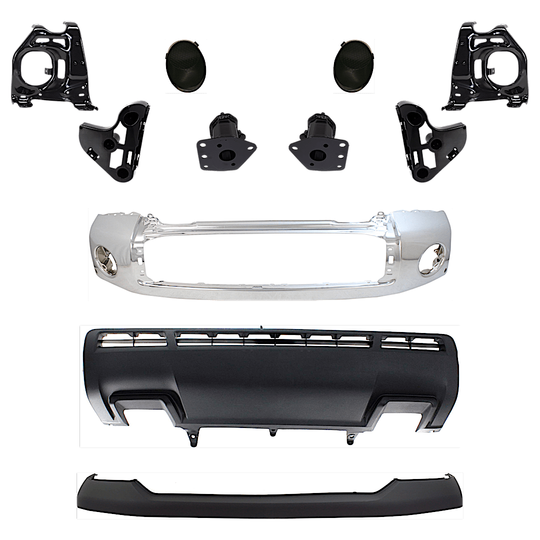 Replacement 11-Piece Kit, Front Bumper, Chrome, Includes (1) Bumper, (6) Bumper Bracket, (1) Bumper Cover, (2) Fog Light Cover, and (1) Valance