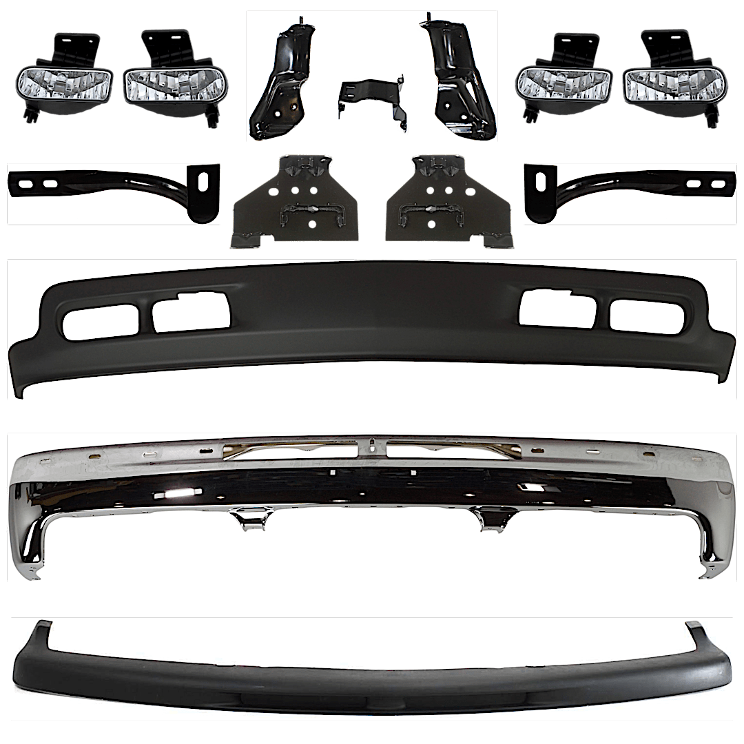 Replacement 12-Piece Kit, Front Bumper, Chrome, Includes (1) Bumper, (7) Bumper Bracket, (1) Bumper Trim, (2) Fog Light, and (1) Valance
