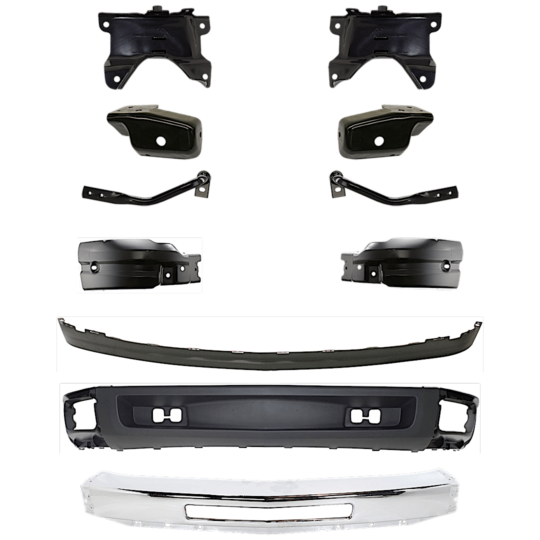 Replacement 13-Piece Kit, Front Bumper, Chrome, Includes (1) Bumper, (6) Bumper Bracket, (4) Bumper End, and (2) Valance