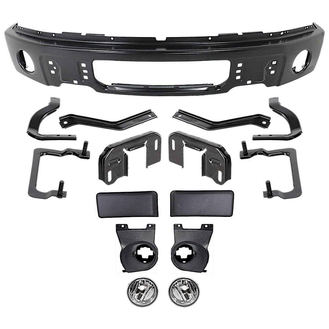 Replacement 15-Piece Kit, Front Bumper, Powdercoated Black, Includes (1) Bumper, (8) Bumper Bracket, (2) Bumper Trim, (2) Fog Light, and (2) Fog Light Bracket