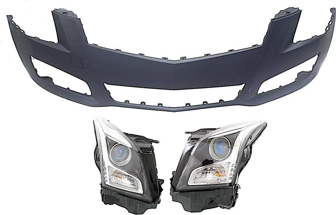 Replacement 3-Piece Kit, Driver and Passenger Side Halogen Headlight, With bulb(s), OE Replacement, Includes (2) Headlight and (1) Bumper Cover