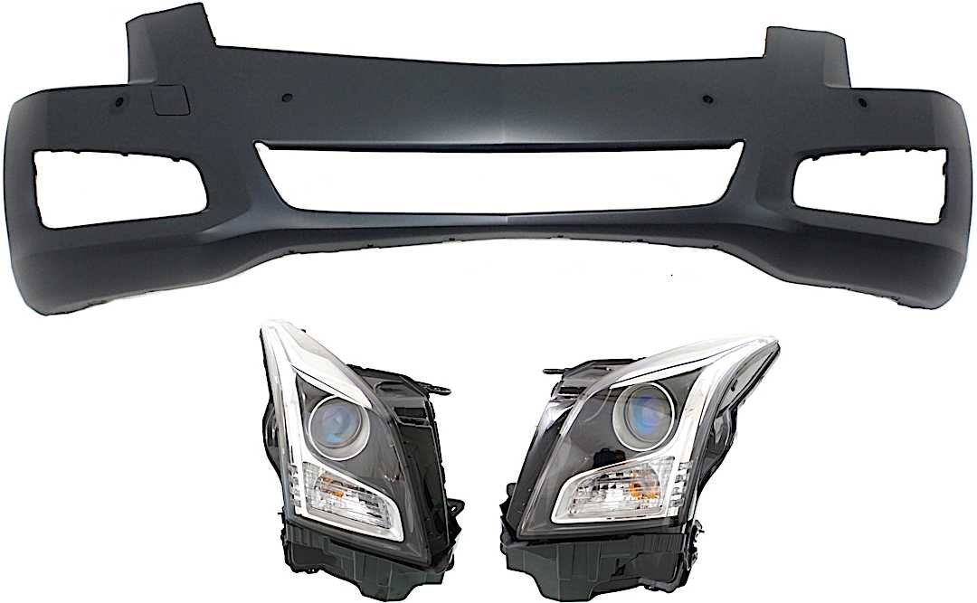 Replacement 3-Piece Kit, Driver and Passenger Side Halogen Headlight, With bulb(s), OE Replacement, Includes (2) Headlight and (1) Bumper Cover