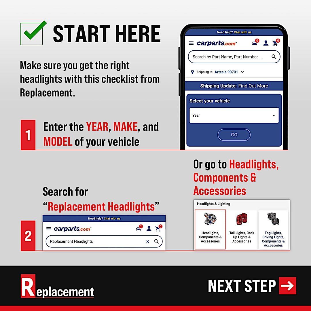 Manufactured and evaluated to strict standards, Replacement headlights offer exceptional quality and the right fit at a competitive price. All Replacement headlights come ready to install with plug-and-play wiring harnesses, so you can get back on the road with ease and rest assured that your vehicle can safely light the way at night or in bad weather.