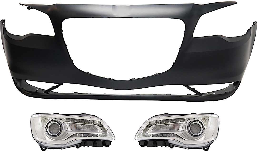 Replacement 3-Piece Kit Driver and Passenger Side Halogen Headlight, With bulb(s), OE Replacement, Includes (2) Headlight and (1) Bumper Cover