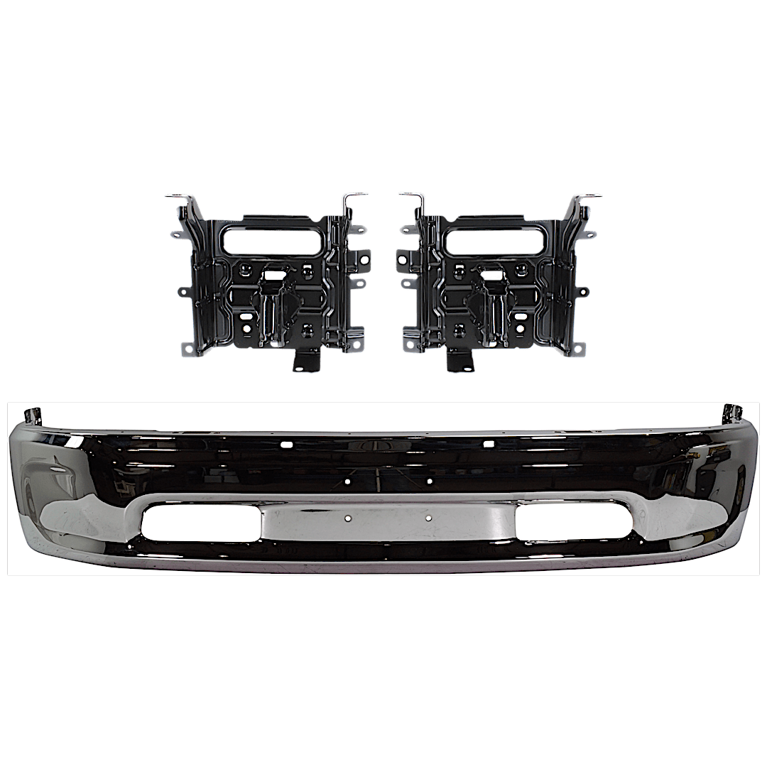 Replacement 3-Piece Kit, Front, Driver and Passenger Side Bumper, Chrome, Includes (1) Bumper and (4) Bumper Bracket