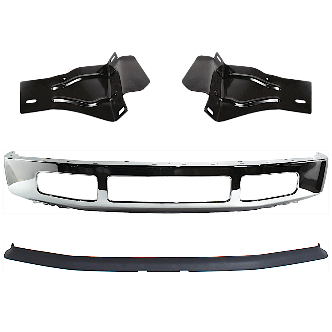 Replacement 4-Piece Kit, Bumper, Chrome, Includes (1) Bumper, (2) Bumper Bracket, and (1) Valance