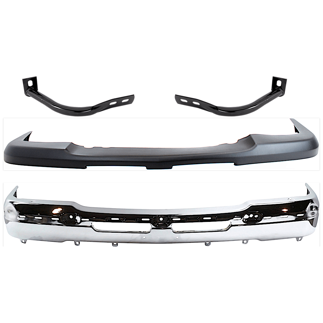 Replacement 4-Piece Kit, Front Bumper, Chrome, Includes (1) Bumper, (2) Bumper Bracket, and (1) Bumper Cover