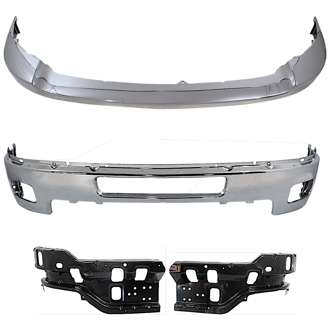 Replacement 4-Piece Kit, Front Bumper, Chrome, Includes (1) Bumper, (2) Bumper Bracket, and (1) Bumper Trim
