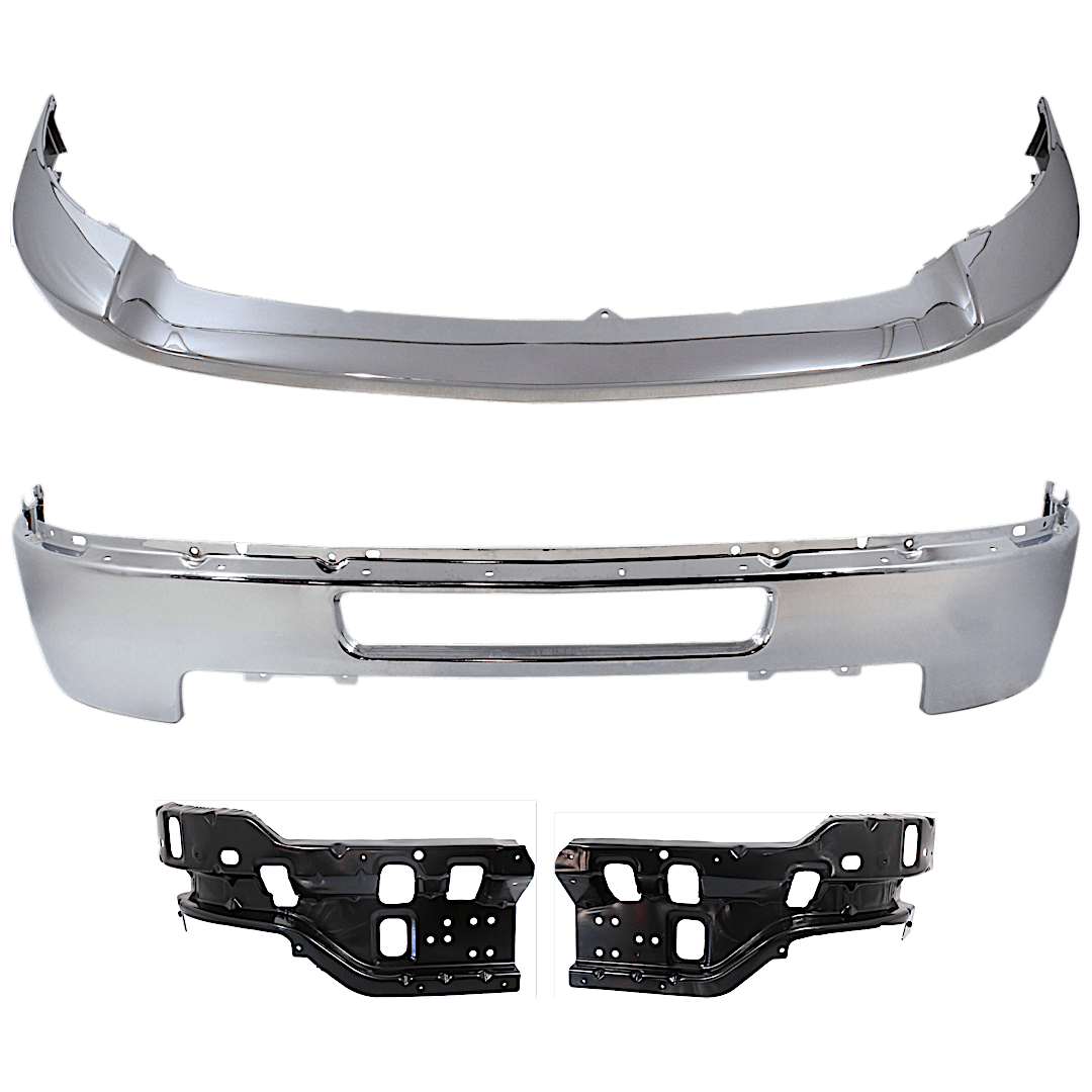 Replacement 4-Piece Kit, Front Bumper, Chrome, Includes (1) Bumper, (2) Bumper Bracket, and (1) Bumper Trim
