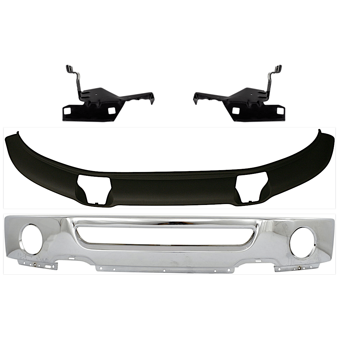 Replacement 4-Piece Kit Front Bumper, Chrome, Includes (1) Bumper, (2) Bumper Bracket, and (1) Valance