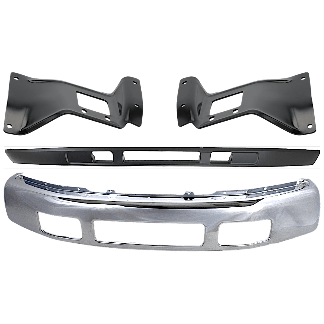 Replacement 4-Piece Kit, Front Bumper, Chrome, Includes (1) Bumper, (2) Bumper Bracket, and (1) Valance