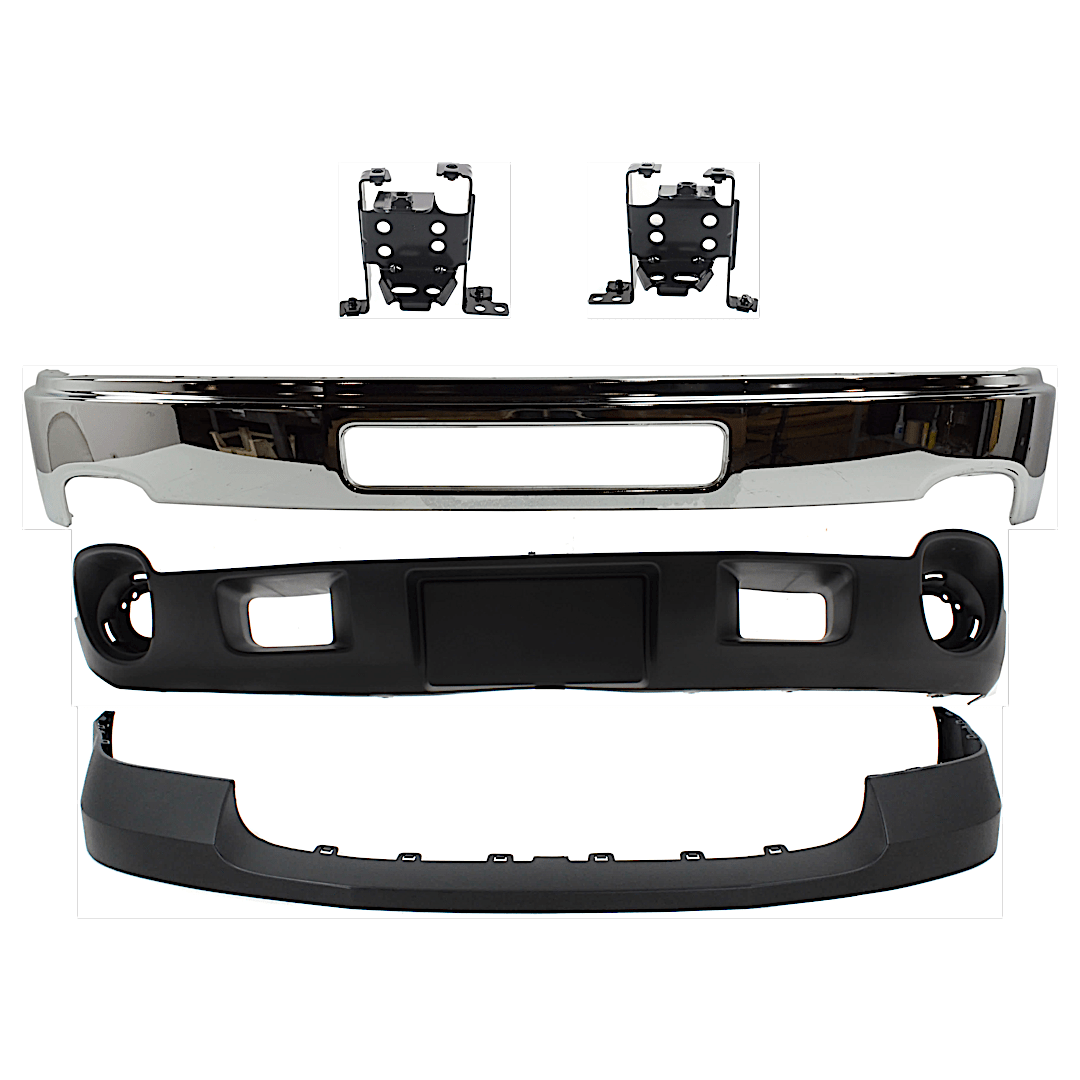 Replacement 5-Piece Kit, Bumper, Chrome, Includes (1) Bumper, (2) Bumper Bracket, (1) Bumper Cover, and (1) Valance