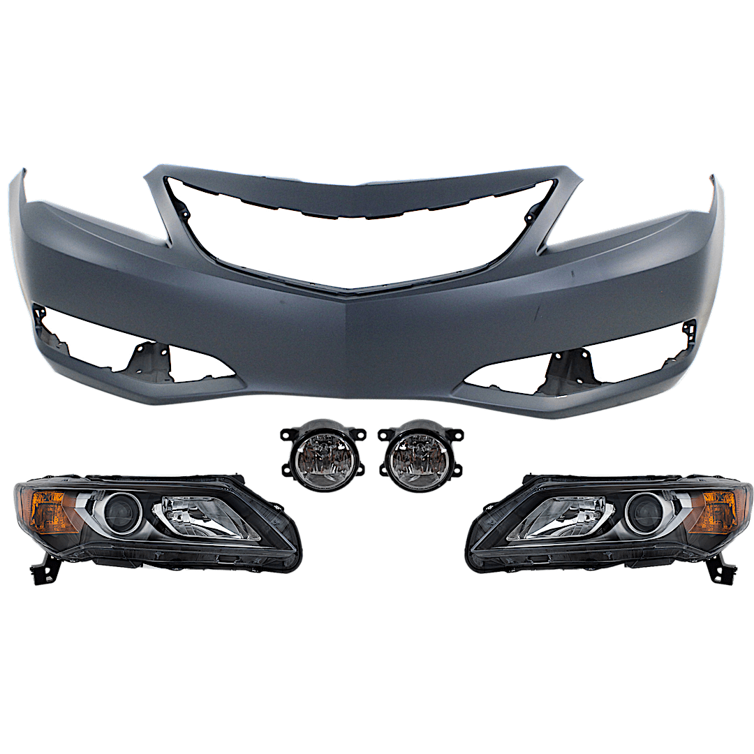 Replacement 5-Piece Kit Driver and Passenger Side Halogen Headlight, With bulb(s), OE Replacement, Includes (1) Bumper Cover, (2) Fog Light and (2) Headlight
