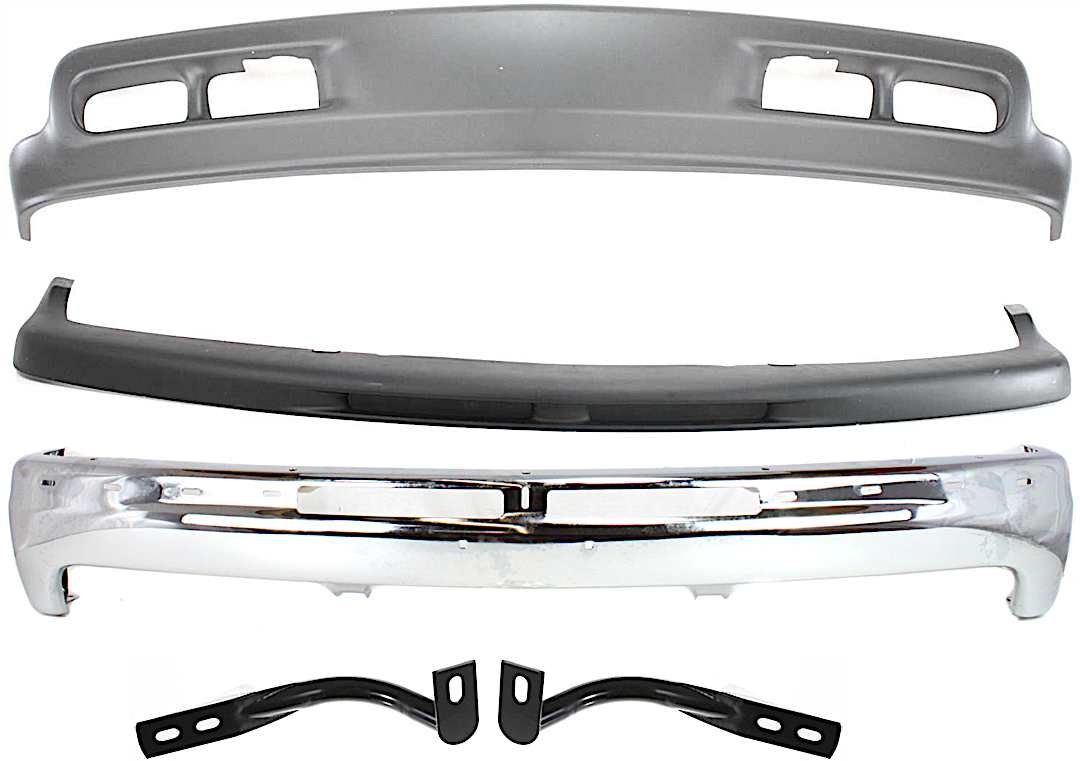 Replacement 5-Piece Kit, Front Bumper, Chrome, Includes (1) Bumper, (2) Bumper Bracket, (1) Bumper Trim, and (1) Valance