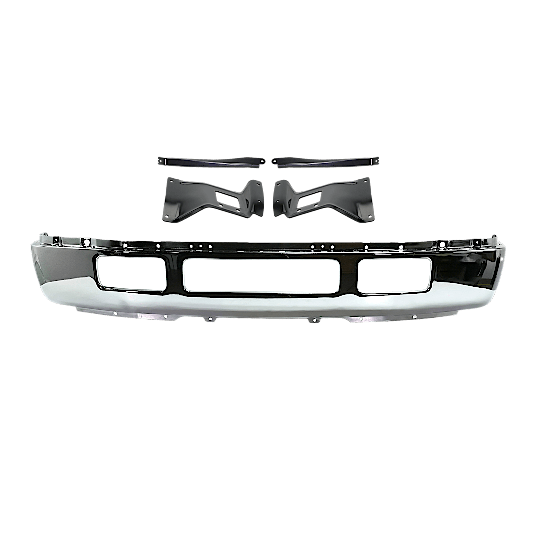 Replacement 5-Piece Kit, Front Bumper, For Models With Fender Flare Holes, Chrome, Includes (1) Bumper and (4) Bumper Bracket