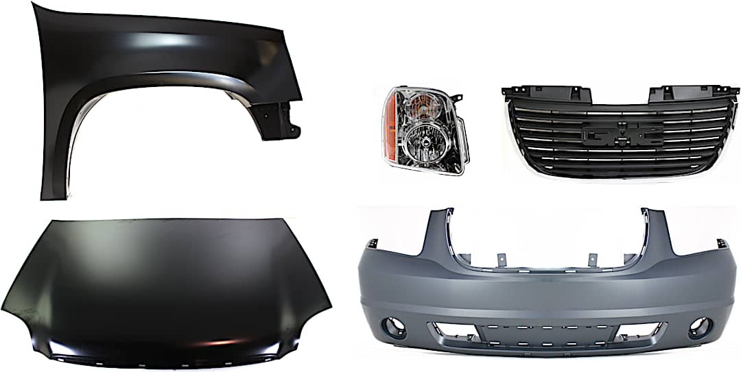 Replacement 5-Piece Kit, Front, Passenger Side Fender, Sport Utility, Includes (1) Bumper Cover, (1) Fender, (1) Grille, (1) Headlight, and (1) Hood