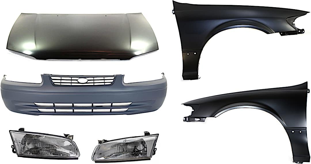 Replacement 6-Piece Kit Factory Style Hood, USA Built Vehicle, Steel, Primed, Includes (1) Bumper Cover, (2) Fender, (2) Headlight, and (1) Hood