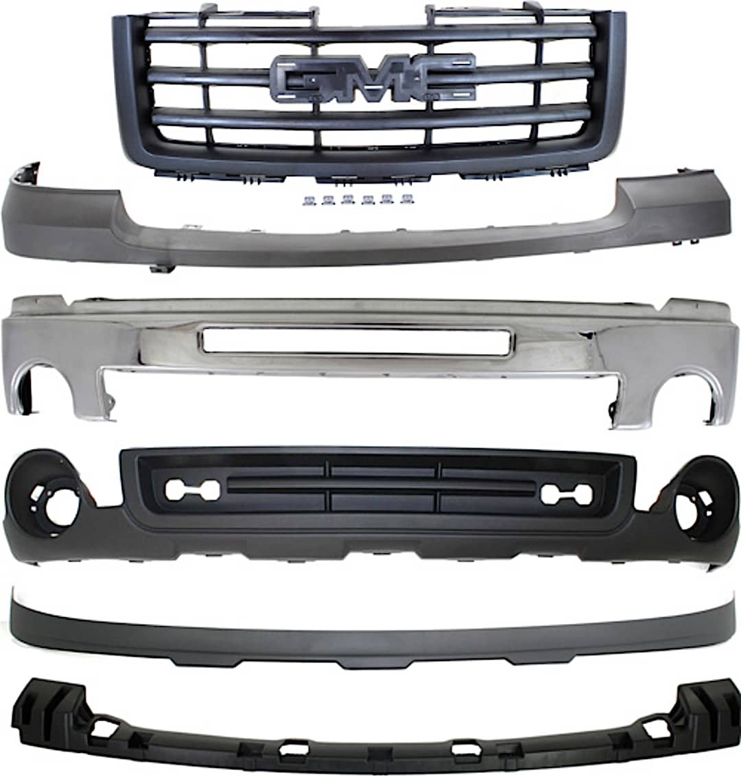 Replacement 6-Piece Kit, Front Bumper, Chrome, Includes (1) Bumper, (1) Bumper Bracket, (1) Bumper Cover, (1) Grille, and (2) Valance