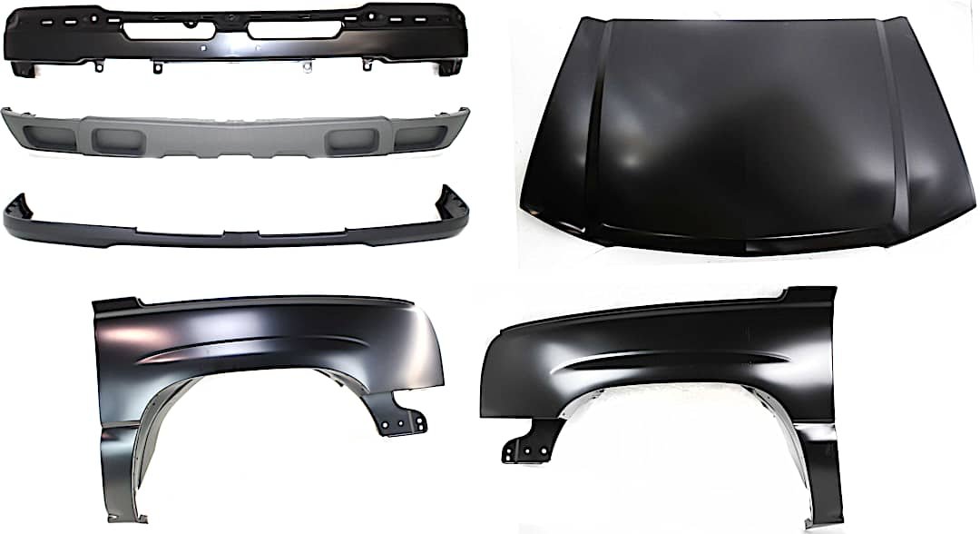Replacement 6-Piece Kit, Front, Driver and Passenger Side Fender, Includes (1) Bumper, (1) Bumper Cover, (2) Fender, (1) Hood, and (1) Valance