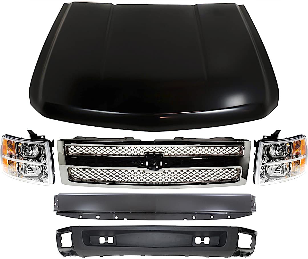 Replacement 6-Piece Kit, Grille Chrome, Includes (1) Bumper, (1) Grille, (2) Headlight, (1) Hood, and (1) Valance