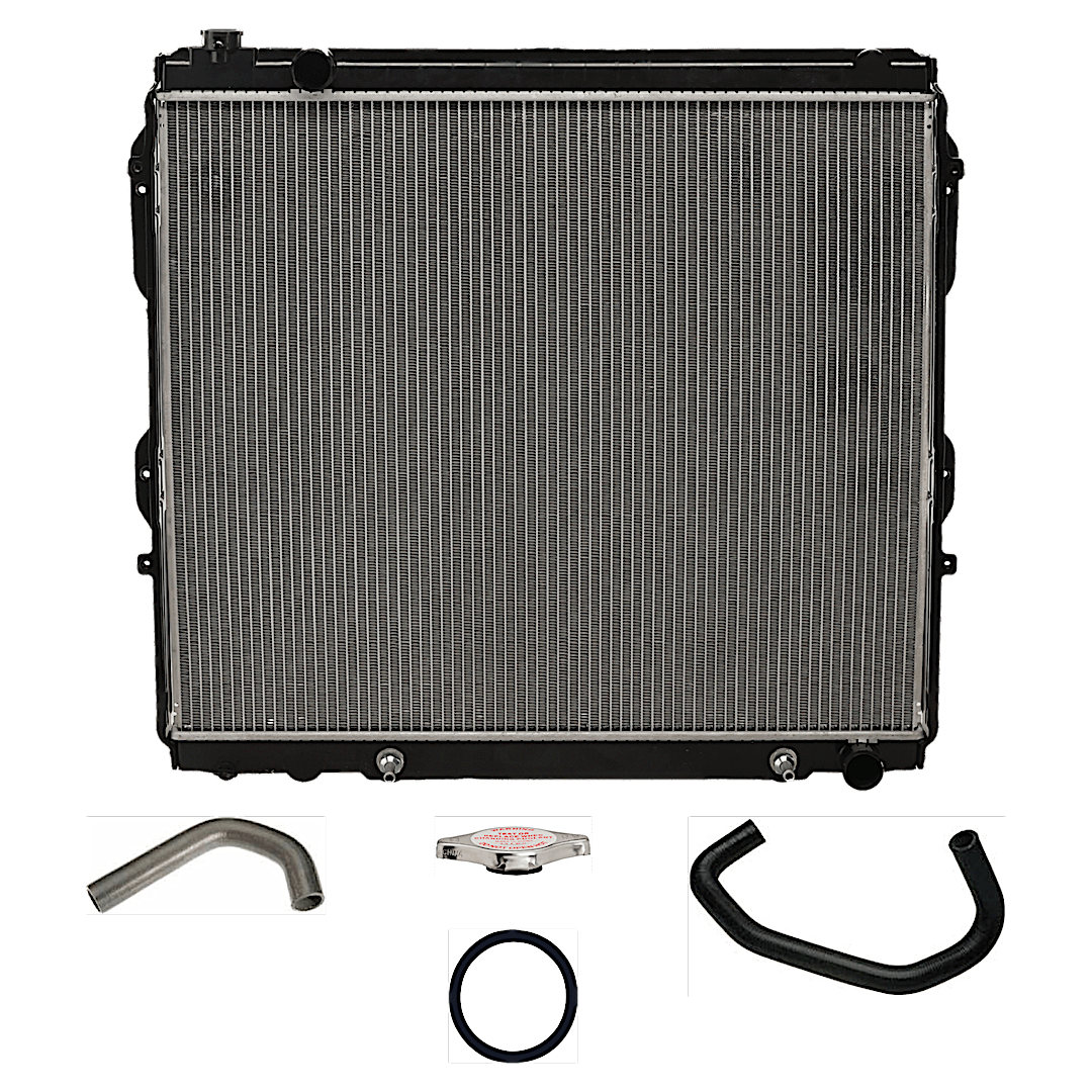 (1) Radiator ,(1) Radiator Cap ,(1) Thermostat ,(2) Radiator Hose ,and (1) Thermostat Gasket |