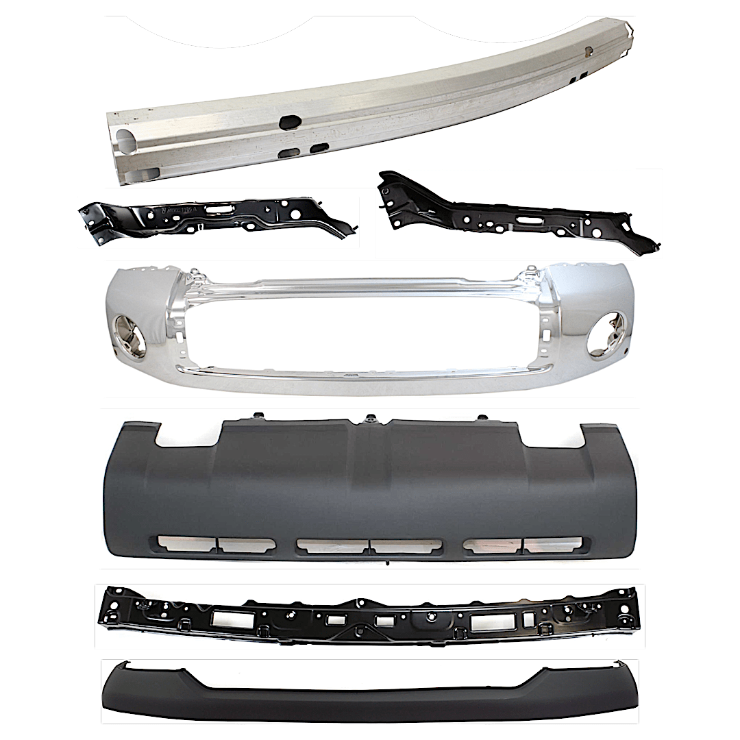 Replacement 7-Piece Kit, Bumper, Chrome, Includes (1) Bumper, (1) Bumper Cover, (1) Bumper Reinforcement, (3) Bumper Retainer, and (1) Valance