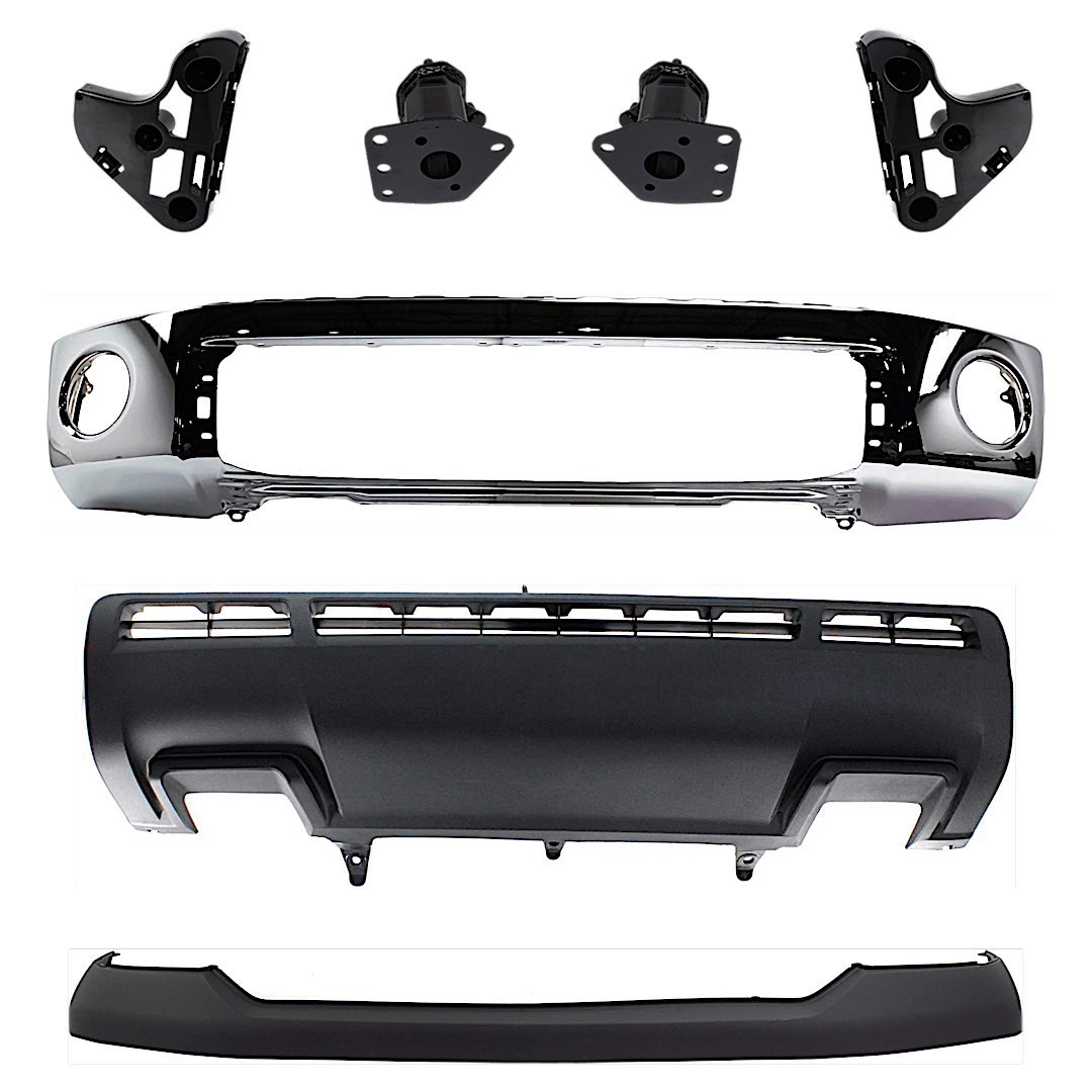 Replacement 7-Piece Kit, Bumper, Chrome, Includes (1) Bumper, (4) Bumper Bracket, (1) Bumper Cover, and (1) Valance