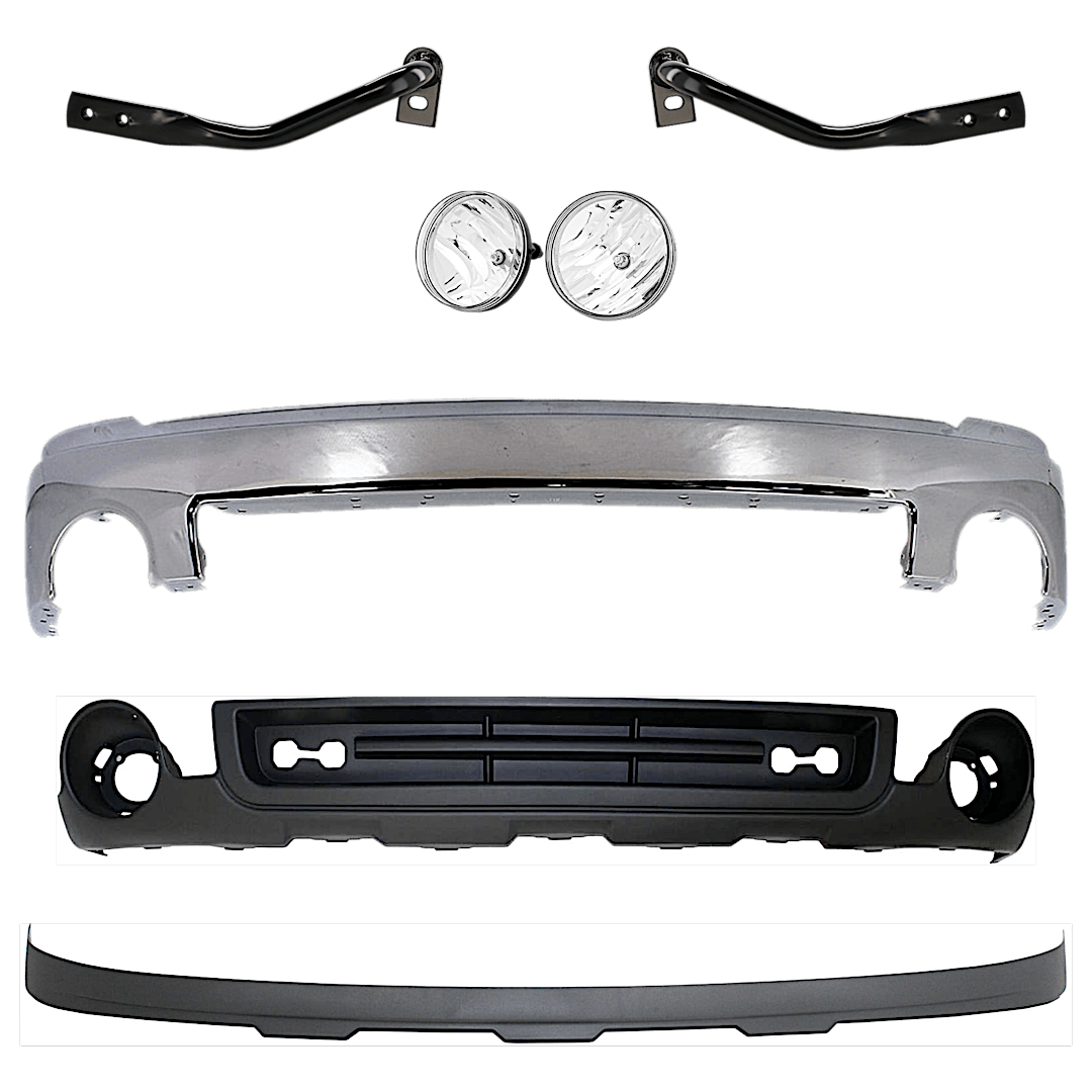 Replacement 7-Piece Kit Front Bumper, Chrome, Includes (1) Bumper, (2) Bumper Bracket, (2) Fog Light, and (2) Valance