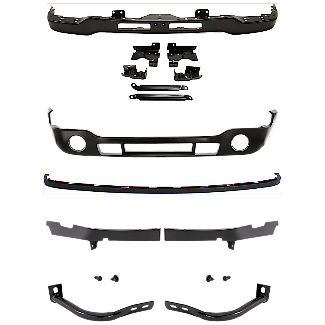 Replacement 7-Piece Kit, Front Bumper, Painted Black, Includes (1) Bumper, (2) Bumper Bracket, (1) Bumper Cover, (2) Bumper Trim, and (1) Valance