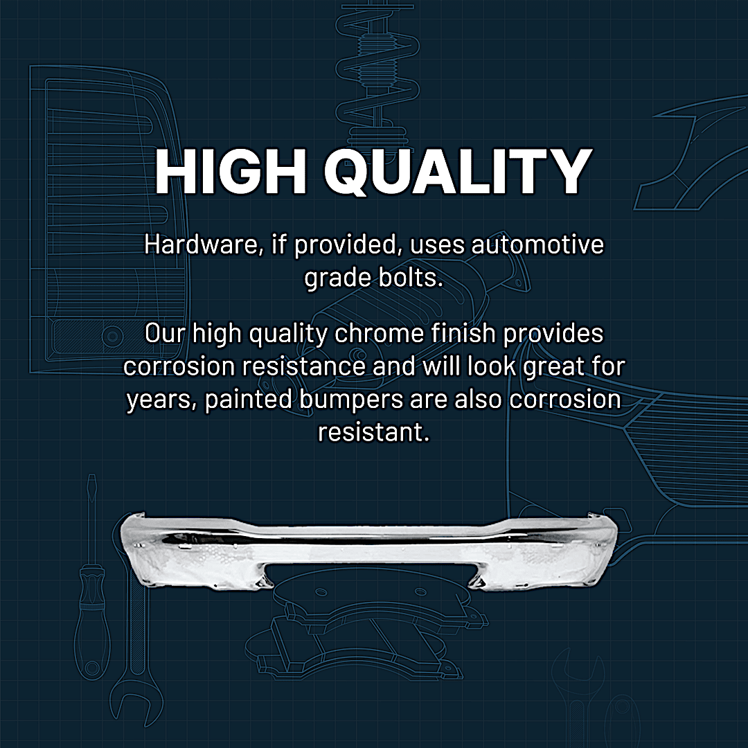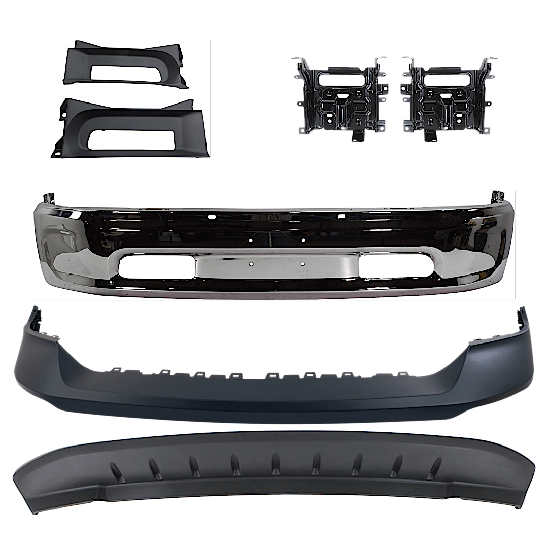Replacement 7-Piece Kit, Front, Lower Bumper, Chrome, Includes (1) Bumper, (2) Bumper Bracket, (1) Bumper Cover, (2) Bumper Trim, and (1) Valance