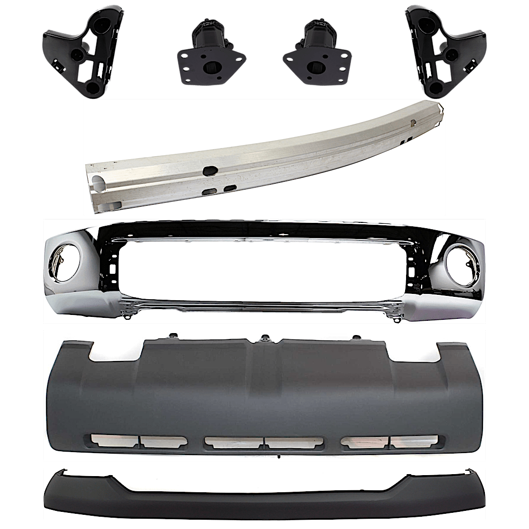 Replacement 8-Piece Kit, Front Bumper, Chrome, Includes (1) Bumper, (4) Bumper Bracket, (1) Bumper Cover, (1) Bumper Reinforcement, and (1) Valance