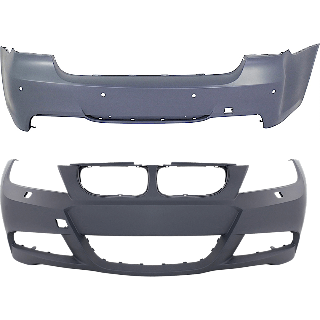 Replacement Front and Rear Primed Bumper Covers, For Models With M Package, With Headlight Washer Holes, With Rear Bumper Park Distance Control Sensor Holes