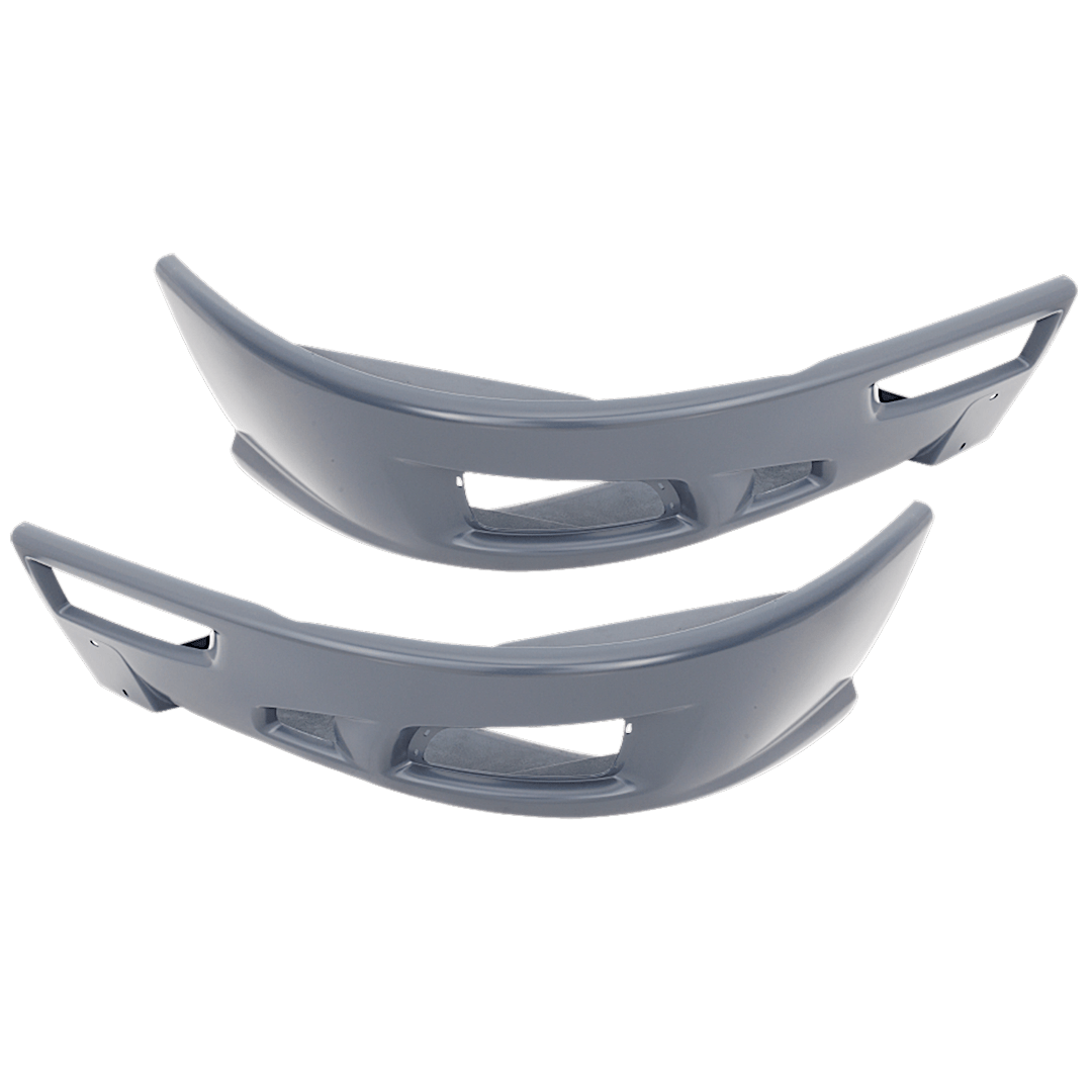 Replacement Front, Driver and Passenger Side Bumper End, Primed Plastic