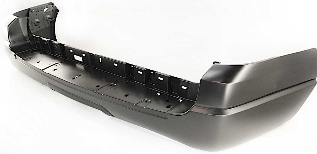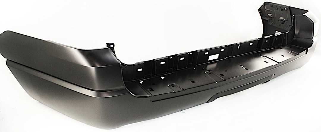 ReplaceXL Rear Primed Bumper Cover, NBX/XLS/XLT Models, With Step Pad Provision and Molding Holes, Without Parking Aid Sensor Holes