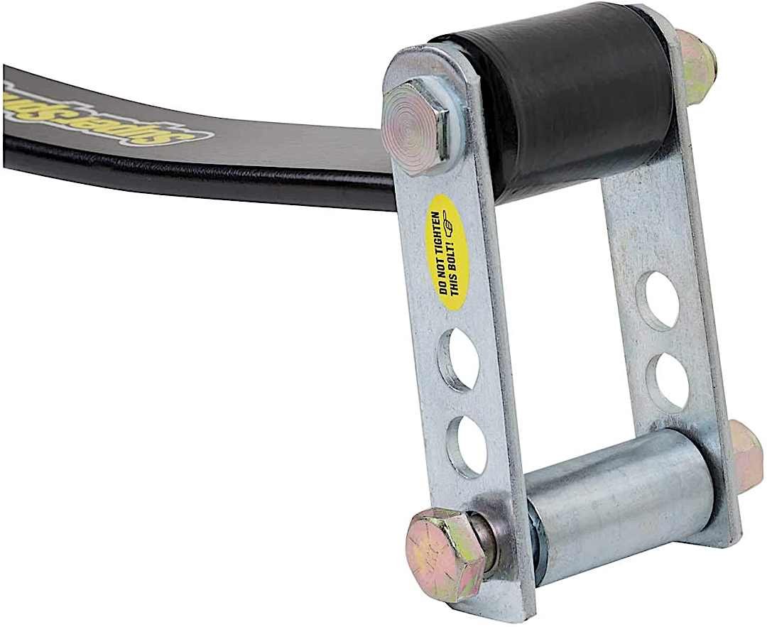 1 ,500 lbs. Additional Load-Leveling Ability; Up to 30-percent Reduced on Body Roll Up; Adjustable Shackles; Shot Peened Steel; SAE 5160H High-Grade Steel; Not Recommended for Use on Pick-Up Models |