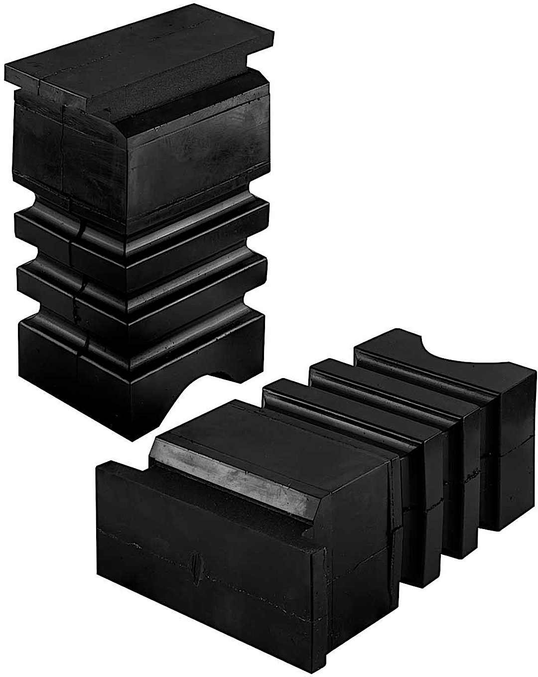 - One-piece unit attached on one side used as a replacement/upgrade to factory bump stops