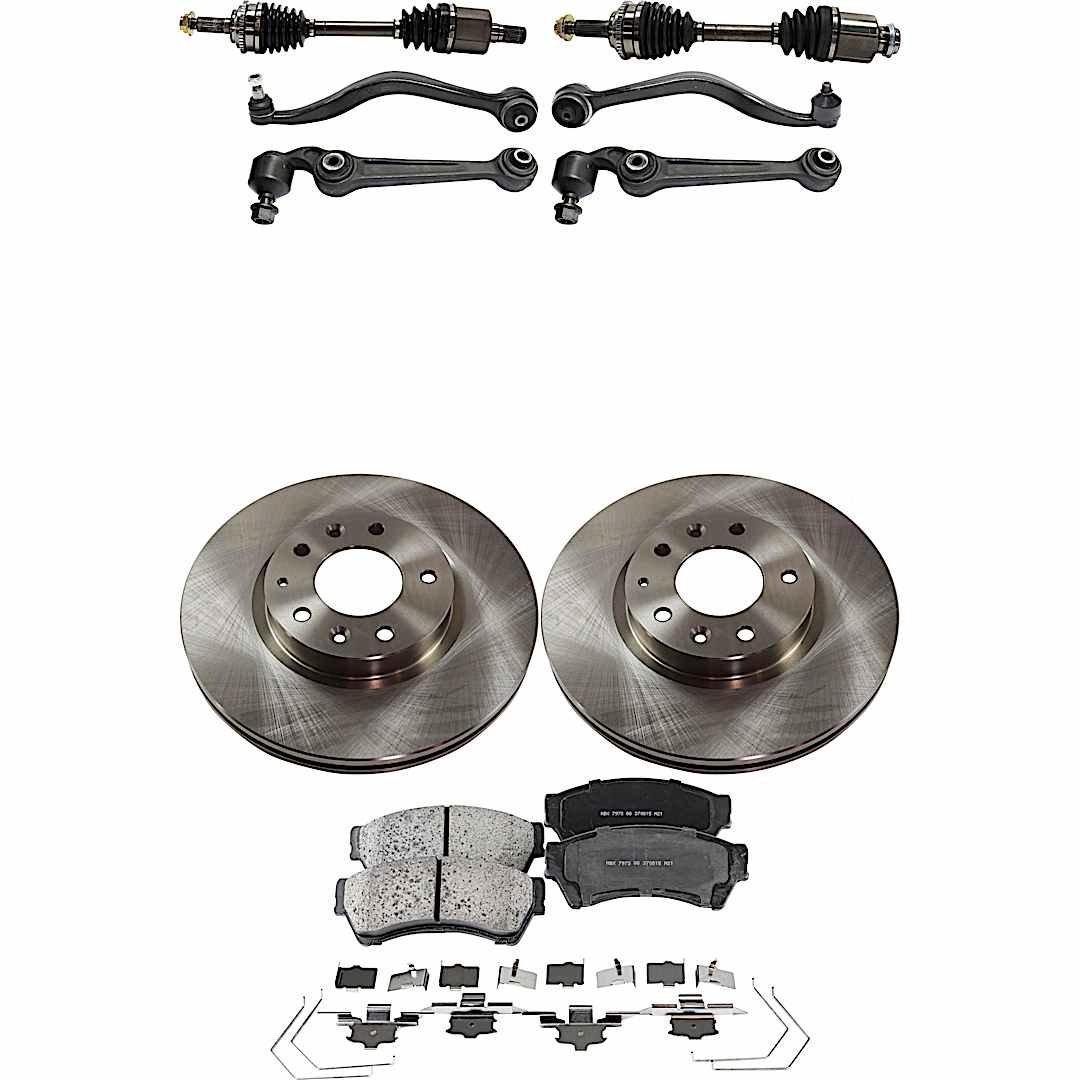 TrueDrive 10-Piece Kit Front, Driver and Passenger Side Axle Assembly with Brake Discs, Brake Pad Set, and Control Arms, AWD, 6-Speed Automatic Transmission