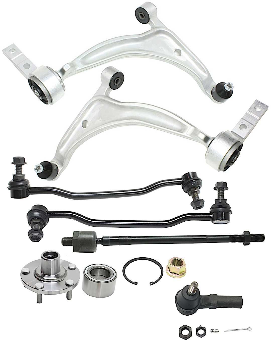 Control Arm – Includes nut(s); Tie Rod End – Includes nut; Front Driver or Passenger Side Inner; Wheel Hub – FWD only |