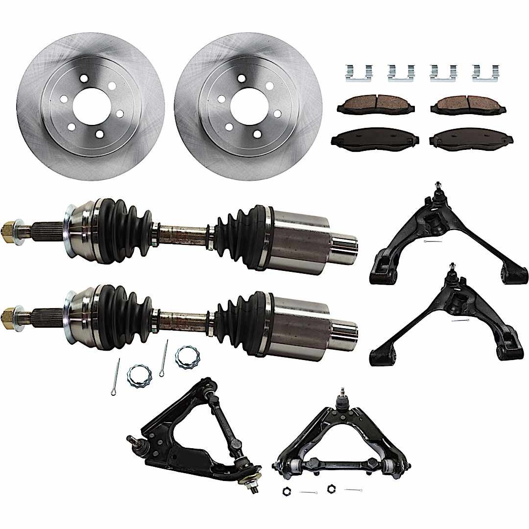 TrueDrive 10-Piece Kit Front, Driver and Passenger Side, Upper and Lower Control Arm, 4WD, Includes (2) Axle Assembly, (2) Brake Disc, (1) Brake Pad Set, and (4) Control Arm
