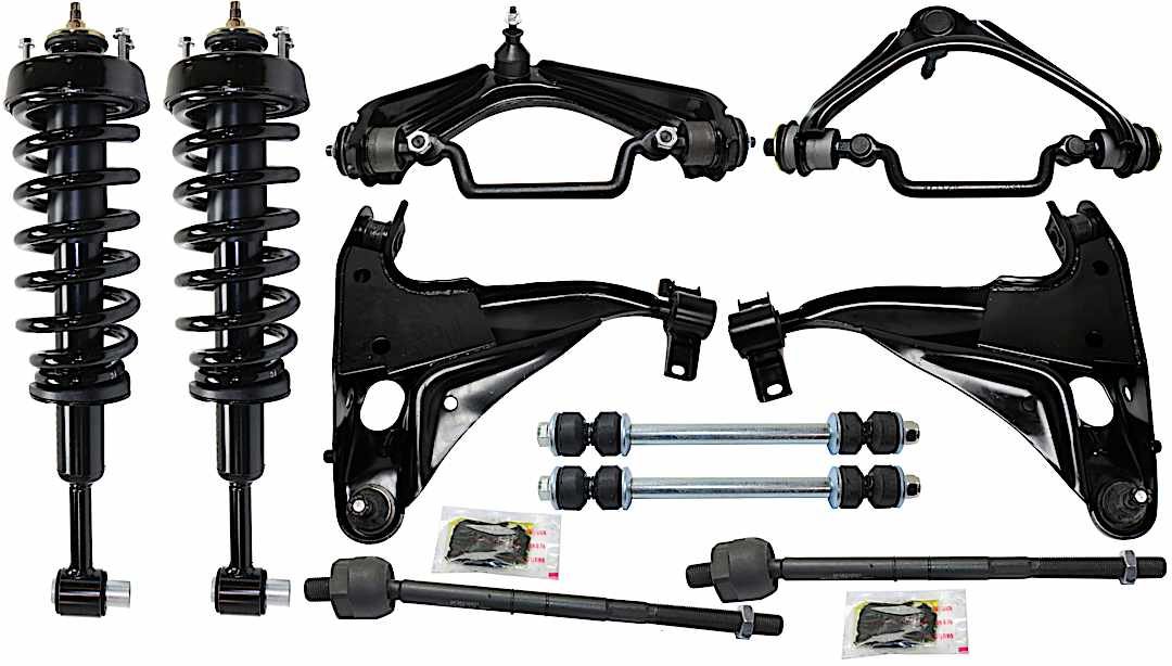 TrueDrive 10-Piece Kit Front, Driver and Passenger Side, Upper and Lower Control Arm Kit, Includes (4) Control Arm, (2) Shock Absorber and Strut Assembly, (2) Sway Bar Link, and (2) Tie Rod End