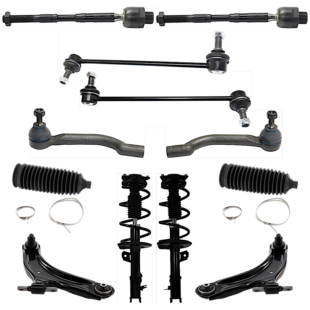TrueDrive 12-Piece Kit Driver and Passenger Side Suspension Includes Control Arms, Loaded Struts, Steering Rack Boots, Sway Bar Links, and Tie Rod Ends