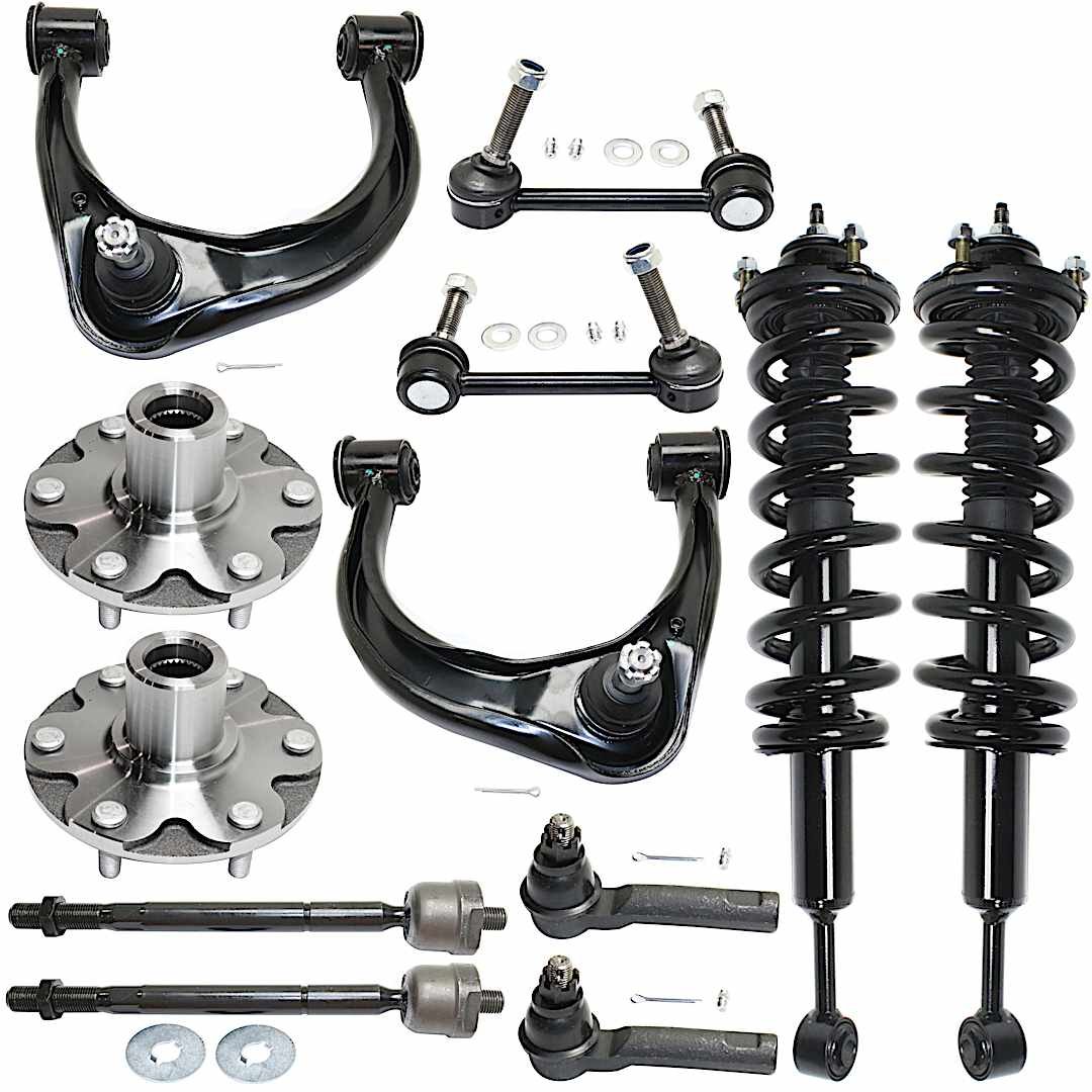 TrueDrive 12-Piece Kit Front, Driver and Passenger Side, Upper Control Arm with Loaded Struts, Sway Bar Links, Tie Rod Ends, and Wheel Hubs, 4WD