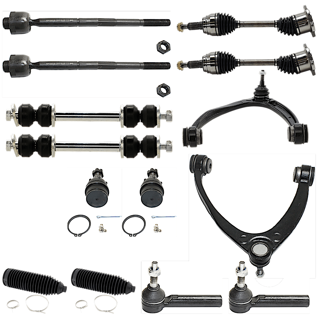 TrueDrive 14-Piece Kit Driver and Passenger Side Suspension Includes Axle Assemblys, Ball Joints, Control Arms, Steering Rack Boots, Sway Bar Links, and Tie Rod Ends