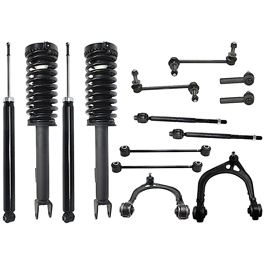 TrueDrive 14-Piece Kit Driver and Passenger Side Suspension with Control Arm, Loaded Strut, Shock Absorber, Sway Bar Link, and Tie Rod End, Rear Wheel Drive, Without Performance Suspension, USA Built Vehicle