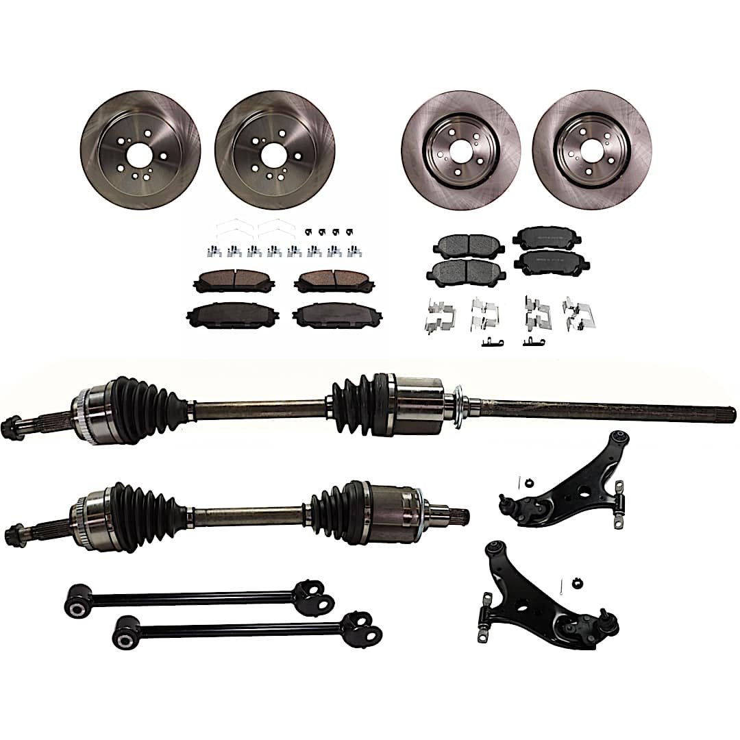 TrueDrive 14-Piece Kit Front, Driver and Passenger Side Axle Assembly, All Wheel Drive, Includes Brake Discs, Brake Pad Sets, and Control Arms