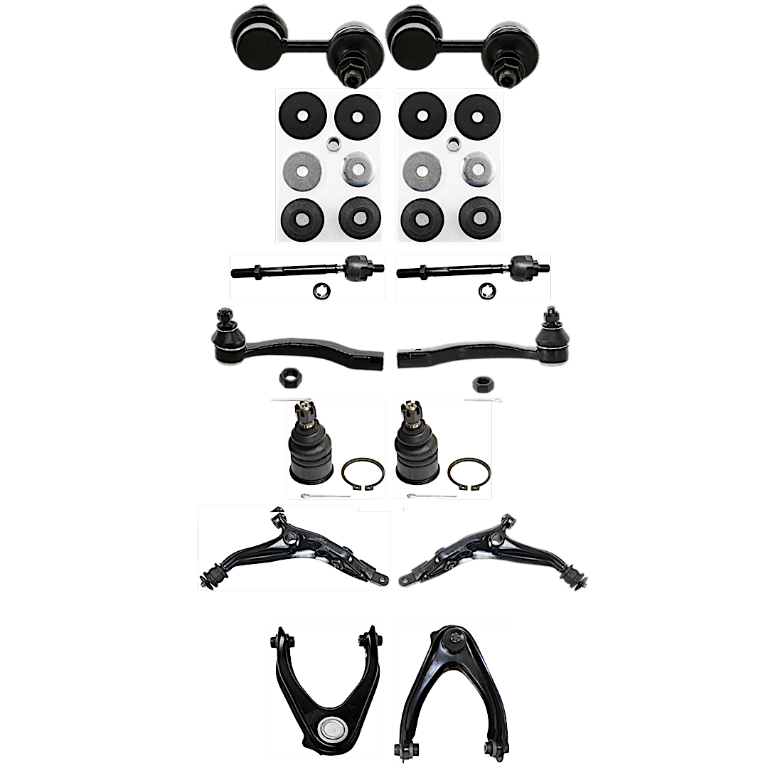 TrueDrive 14-Piece Kit Front, Driver and Passenger Side, Upper and Lower Control Arms, Includes (2) Ball Joint, (4) Control Arm, (2) Strut Mount Bushing, (2) Sway Bar Link, and (4) Tie Rod End