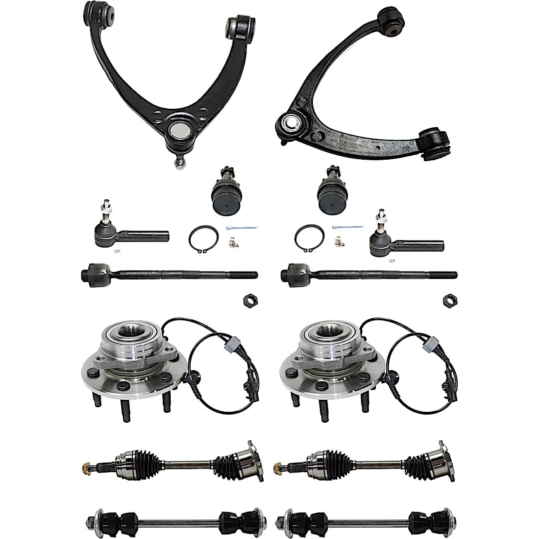 TrueDrive 14-Piece Kit Front, Driver and Passenger Side, Upper Control Arm with Axle Assemblies, Ball Joints, Sway Bar Links (12 mm. Stud), Tie Rod Ends, and Wheel Hubs, AWD/4WD